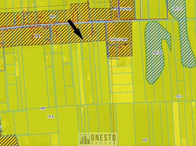 Działka oznaczona jako mieszkalnictwo rolnicze (MR) z dopuszczeniem zabudowy jednorodzinnej (MN), co jest korzyścią w szybszym ubieganiu się o pozwolenie na budowę oraz częściowo również przeznaczenie typowo rolne (RP).