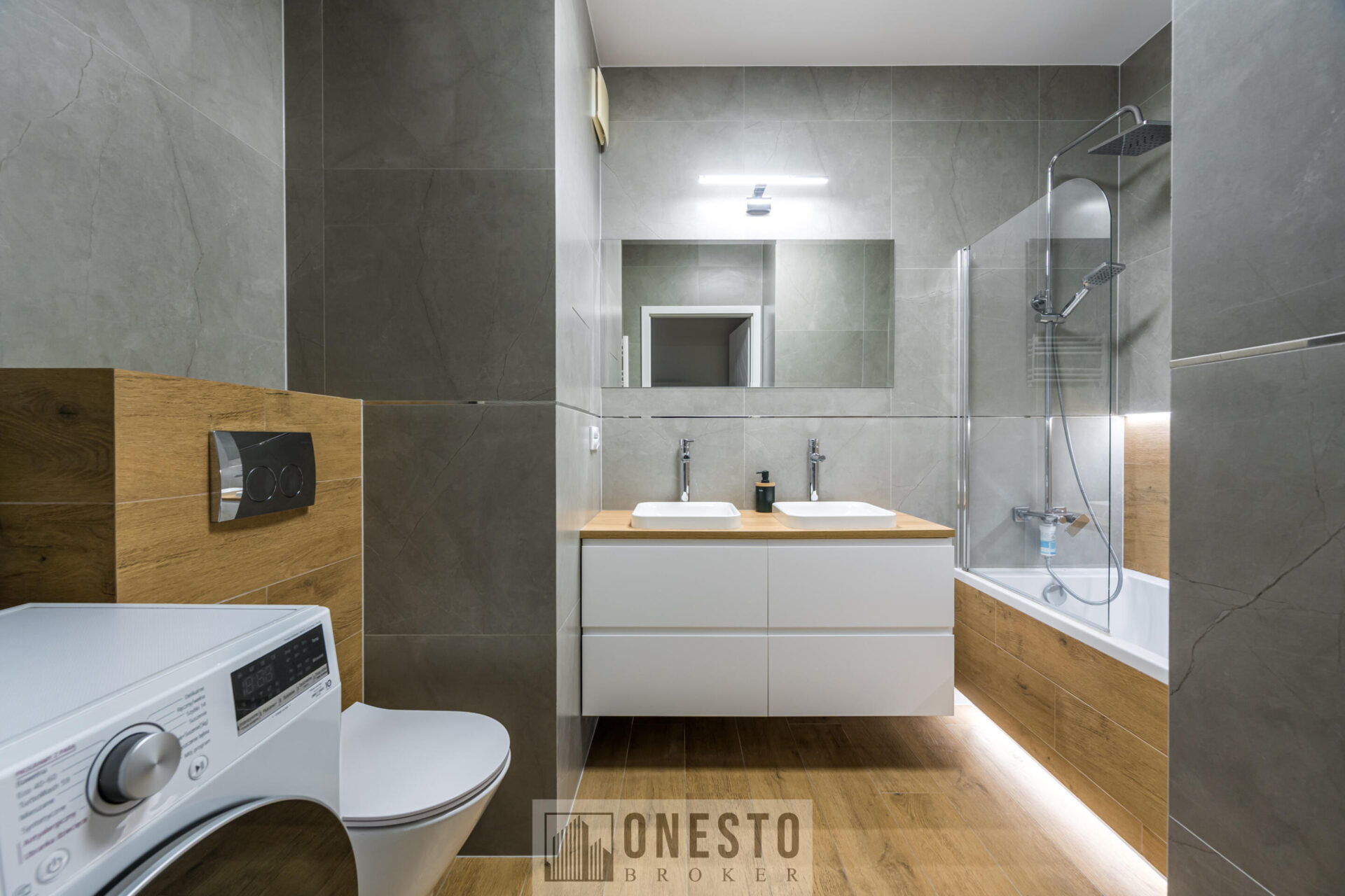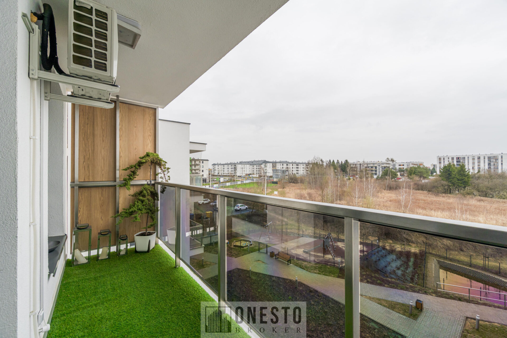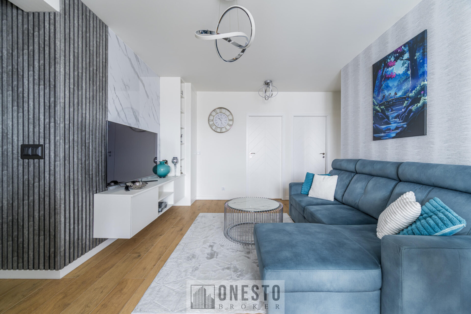 Ofertę stanowi wykończone z dbałością mieszkanie o powierzchni 72,66 m2. Mieszkanie dwustronne: wschód (1 pokój, balkon z salonem i aneksem kuchennym) – zachód (2 sypialnie). Każde z pomieszczeń wyposażone w zabudowę na wymiar, która pozostaje w ofercie sprzedaży mieszkania. Wyposażenie ruchome pozostaje do uzgodnienia. Mieszkanie wyposażone jest również w klimatyzacje. Wykończone z porządnych, wyższych materiałów oraz z dbałością użytkowane przez obecnych właścicieli. Widok na teren zielony, na którym nie wybuduje się już żaden blok mieszkalny !